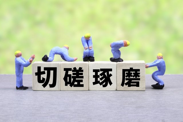 Japan has a reputation for hard work and fine craftsmanship. Japanese manufactured goods, such as automobiles and electronics, are well-known for their high quality and reliability. There is a Japanese expression, from ancient times, which helps to explain this excellent level of doing and making things: 切磋琢磨 (SESSA TAKUMA). 切 (Setsu) means cutting horn or bone of animal; 磋 (Sa) means sharpening it; 琢 (Taku) means hitting and breaking a rock, 磨 (Ma) means polishing it. Back in the prehistoric days, fashioning good tools and utensils by hand took a long time, required preciseness, and the tool-makers would gradually improve their skills and techniques. Improved living conditions, and even survival, depended on producing dependable implements and weapons. So, as you can see, SESSA TAKUMA is a way to remind Japanese people of the need to be diligent and always strive to get better.
