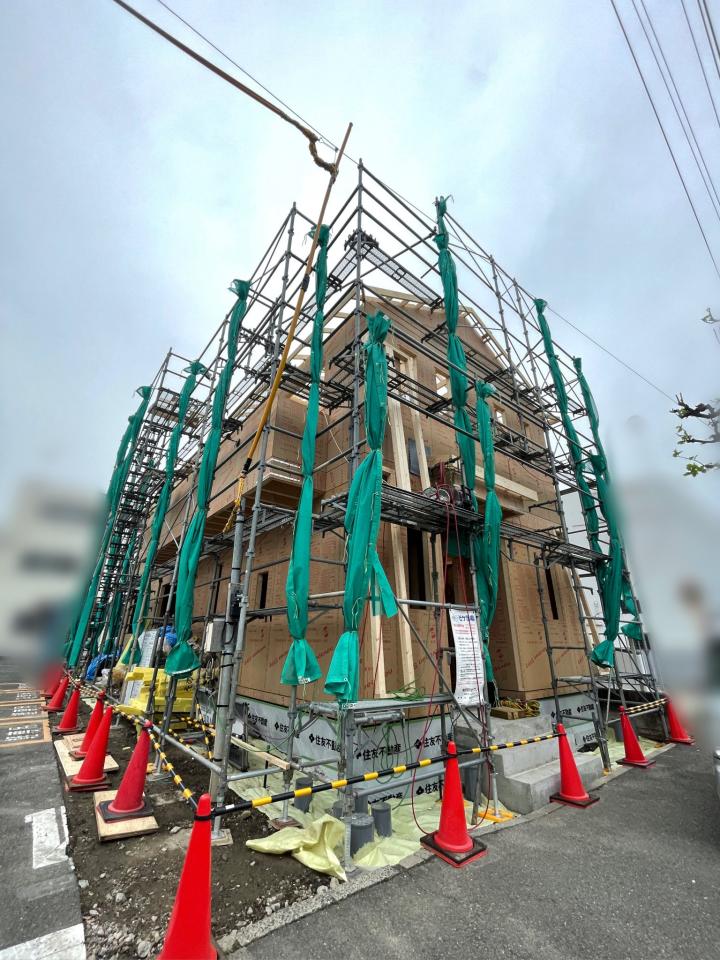 We consulted with a property owner who wanted to make more efficient use of a land-plot measuring 50 TSUBO "坪" (equivalent to 165 square meters or 1,780 square feet). As a result, it was decided to build a new rental house, designed for U.S. military customers. The shape of the land-plot is long and narrow, so numerous visits to the site were made in order to develop an ideal design. For example, various measurements of the building site were made by drawing chalk lines on the ground, and we moved-around a vehicle to determine the best placement of a parking spot. Based on this, the precise location and orientation of the house was decided, and we moved on to the next steps.