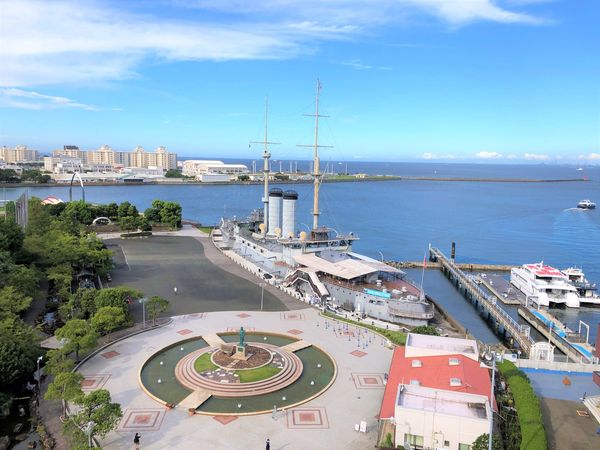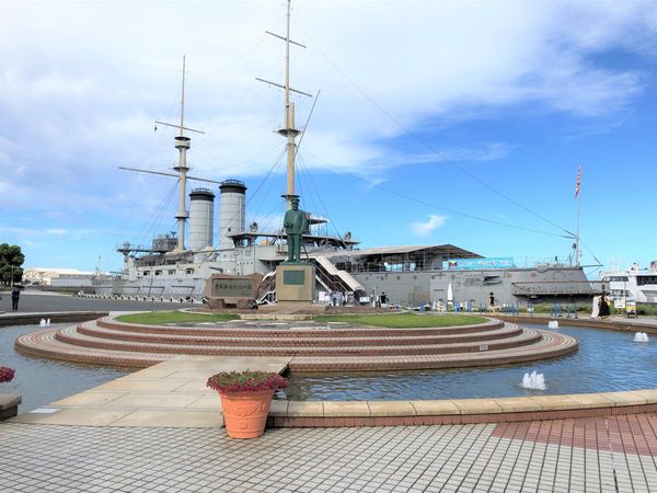 Located in Yokosuka City is a famous and historic battleship from Japan's old Imperial Navy, which is named: MIKASA (三笠). MIKASA has been preserved as a "Memorial Battleship" (KINEN-KAN 記念艦); and it also is a museum, where visitors can go aboard and walk-around to see various displays about the ship itself, as well as Japan's naval history. In the late-19th century, Japan was still modernizing, and did not yet have shipyards which could build big naval cruisers and battleships. So, Japan paid for a number of warships to be made in England, and from 1899~1902, MIKASA was built at Vickers Shipyard at Barrow-in-Furness, Cumbria. After arriving in Japan, MIKASA immediately went into service as the Flagship of the Navy's Combined Fleet, and, in 1905, played a leading role in winning the Battle of Tsushima Strait during Russo-Japanese War. After being retired from active naval service, in 1926, MIKASA was installed at its current location in a park in Yokosuka harbor, facing Tokyo Bay. The spacious park surrounding MIKASA is located only a several-minutes' walk from the U.S. Navy Base, and has a small amphitheater, water fountains, a gift shop, and many areas to walk, sit, relax, and have a picnic, etc. There also is a small parking lot located adjacent to the park's main entrance, but, like many downtown parking areas, it gets filled-up quickly during the busy hours. We hope you will get a chance to visit Yokosuka's famous battleship MIKASA!