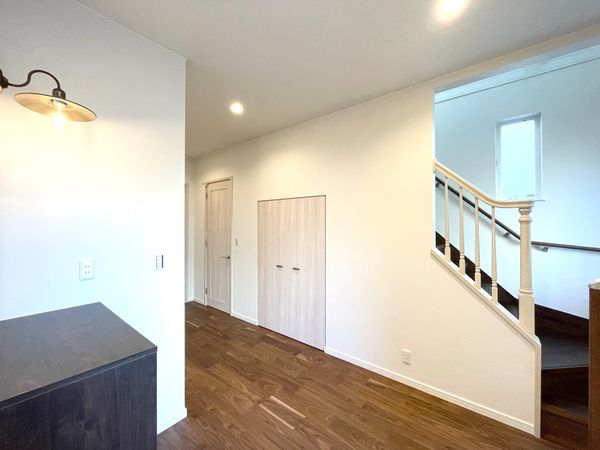Our proposed design was approved and adopted, in which a stylish colonial-type handrail is installed on the part of the stairs which enters the line-of-sight from the entrance. It makes the space look more gorgeous at a glance. The wall is cut and shaped to match the handrail, so there no sense of oppressiveness, and the room feels more spacious and airy.