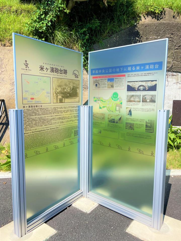 Yokosuka City straddles the Miura Peninsula, with its less-populated west coast facing Sagami Bay with views of Mount Fuji, while the east coast is urbanized and faces the busy shipping lanes going into Tokyo Bay. There is a hill which overlooks the downtown and harbor area of Yokosuka, and it is the site of 平和中央公園 ("Heiwa Chuo Koen" or Central Peace Park, in English.) Back during Japan's Meiji era (1868~1912), due to its unobstructed view of Tokyo Bay, the hill was fortified, and a Japanese Imperial Army coastal artillery facility was built there -- called: "Yonegahama Battery." The site was demilitarized after World War II, and then in 1970, it was converted into a public park. Central Peace Park is a nice green & breezy place to go for a jog, walk, or picnic, and it provides spectacular views of the city below and out over Tokyo Bay and its surroundings. There are several interesting monuments, including a statue of one of the first commanders of Yokosuka Navy Base, Captain Benny Decker, and during early spring weeks many blooming cherry blossom trees can be seen. Recently, a small playground area for children has been added. Located adjacent to the park are Yokosuka Cultural Hall and Yokosuka Museum of Nature and Human Culture, and there is a large surrounding parking lot, so access by car is possible. In summary, this scenic hilltop park, located close to the Yokosuka downtown area and the navy base, is a great place to "get away from it all" for a while and just to enjoy and relax. If you have any questions or would like to know more, please give us a call.
