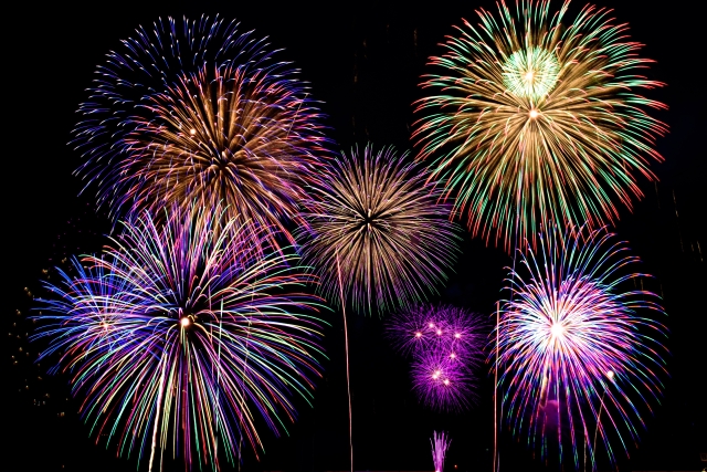 The Japanese word for fireworks is 花火 (Hana-bi), 花 = flower and 火 = fire. As you can see, the combination of kanji characters is wonderful way of describing the decorative explosions which are launched up into the nighttime skies. Fireworks events are called 花火大会 (Hana-bi tai-kai) and most often occur as part of local festivals, or 祭り (Matsuri -- see link below for further details). Another link below has information on the large fireworks event (over 10,000 explosions) which will occur in Yokosuka City on 15 October 2023 -- during cool autumn weather. In addition to the impressive Hana-bi action, the U.S. navy Base (CFAY) will be opened for general visitation as part of the "Friendship Day" community relations event. Back in olden days Japan, fireworks were used as a way to ward-off evil spirits and sometimes to mourn/commemorate the dead after a disaster. During Japan's the Edo period (1603-1868), peace was established around the country after a long period of civil wars, and the Hana-bi came to be used during festivals and celebrations. Since Japan was at peace, gun powder, which had previously been used for weapons, was converted over to making all kinds and sizes of fireworks. The fireworks themselves are spherical shaped and shot into the air from vertical cannon/mortar-like tubes. The largest type of fireworks spheres can measure over 1.2 meters in diameter. Of interest, one thing which is unique about Yokosuka's Hana-bi tai-kai is that the fireworks are launched on the ocean (from a barge anchored offshore the downtown & harbor area). Needless to say, the 15 October event will draw huge crowds and access to viewing areas will be affected by that -- so plan ahead and be prepared accordingly. We hope you will enjoy this festive event.