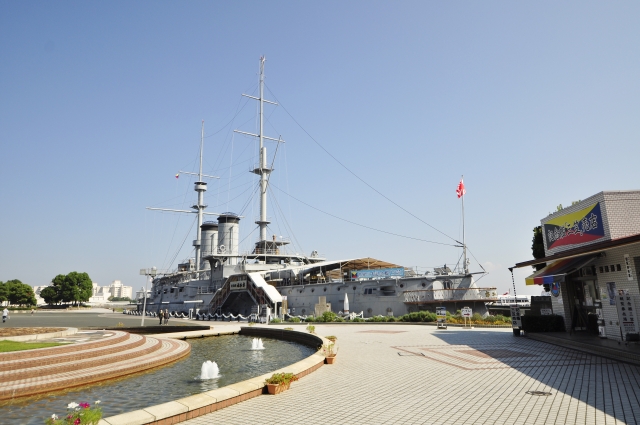 Just a short walking distance from the back gate (Womble Gate) of Yokosuka Navy Base (CFAY), is a nice park which has been built around an old battleship from Japan's Imperial Navy. The memorial battleship (which is also a museum) is named "MIKASA", and it is very famous in Japan. More information on MIKASA is provided at a link below. The park surrounding MIKASA is a great place to visit, with walking paths, places to sit, and green grass areas with ocean views. For many years there was a large & specially designed water fountain area which played music -- however, it recently was closed for repairs. Located nearby the battleship is a small gift store which sells memorabilia, flags, posters, fans, and other souvenirs, as well as packets of "Navy Curry", soft drinks, beer and sake, etc. MIKASA park also serves as the host site for a large annual Curry Rice festival, which usually occurs during the month of May, and visitors from all over the country come to the park to taste & enjoy many different versions of the spicy comfort food. Musical events and performances are regularly played at an open-air amphitheater, which is another unique and enjoyable feature of the park. Finally, located adjacent to the entrance of the park is the ferry service to Saru-Shima (Monkey Island), which is the only natural island inside Tokyo Bay, and a popular tourist attraction in Yokosuka. More information about Saru-Shima and the ferry rides can be found at the two links at the bottom. MIKASA Park has been selected as one of Japan's Top 100 Urban & Historic Parks, and we hope you will get the chance to visit and enjoy it! Written by Good field