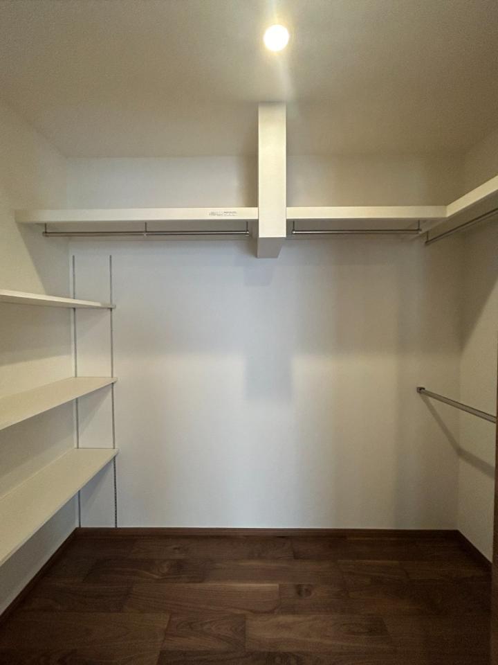 The walk-in closet in the master bedroom can be used to hang long and short items separately, and has movable shelves for storing bags and other items.