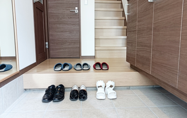 It is a pretty well-known fact that upon entering a Japanese dwelling, one's shoes must be removed. All Japanese houses and apartments have a specialized open space, located just inside the front door, where shoes are taken off and stored -- it is called "genkan" (玄関) and for more details, see the link below. After shoes have been removed, it is OK to go into the house just wearing socks or even barefoot. However, many Japanese prefer to use slippers, which keep their feet warm and clean. House slippers are sold at department stores, home improvement stores, footwear stores, etc., and usually there is an entire shopping aisle with nothing but slippers. There is a huge variety of slipper types, sizes, and colors to choose from. Of interest, in a Japanese style home, different slippers are often worn depending on the room. For example, there are "general use/clean" slippers, which are kept near the genkan and worn around the house. However, a different pair of slippers is worn in the toilet room and bathing room. Also, yet another pair of slippers is worn while out on the balcony hang-drying clothes. The floors of the genkan, the toilet room, and the balcony are not as clean as the rest of the house, and therefore Japanese are careful not to spread dirt, dust, and/or germs, by using a variety of specialized slippers. When you come to our office, and we go to see a house which might be rented, you will notice that we will always provide & wear slippers while walking around the house. We hope you will visit us soon and enjoy living in Japan!