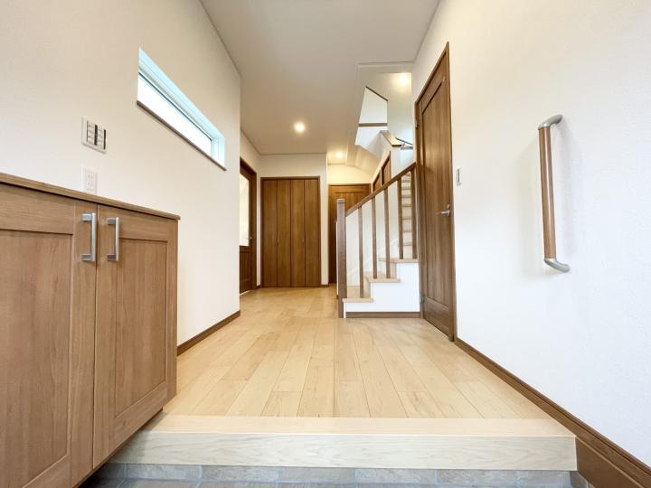 When you enter the room from the entrance, there is a horizontal window in the hall. The handrail of the stairs is a colony style on the front side to reduce the feeling of oppression, and the hall feels bright and spacious. Considering the need to bring in large furniture, we have devised a way to ensure as much space as possible.