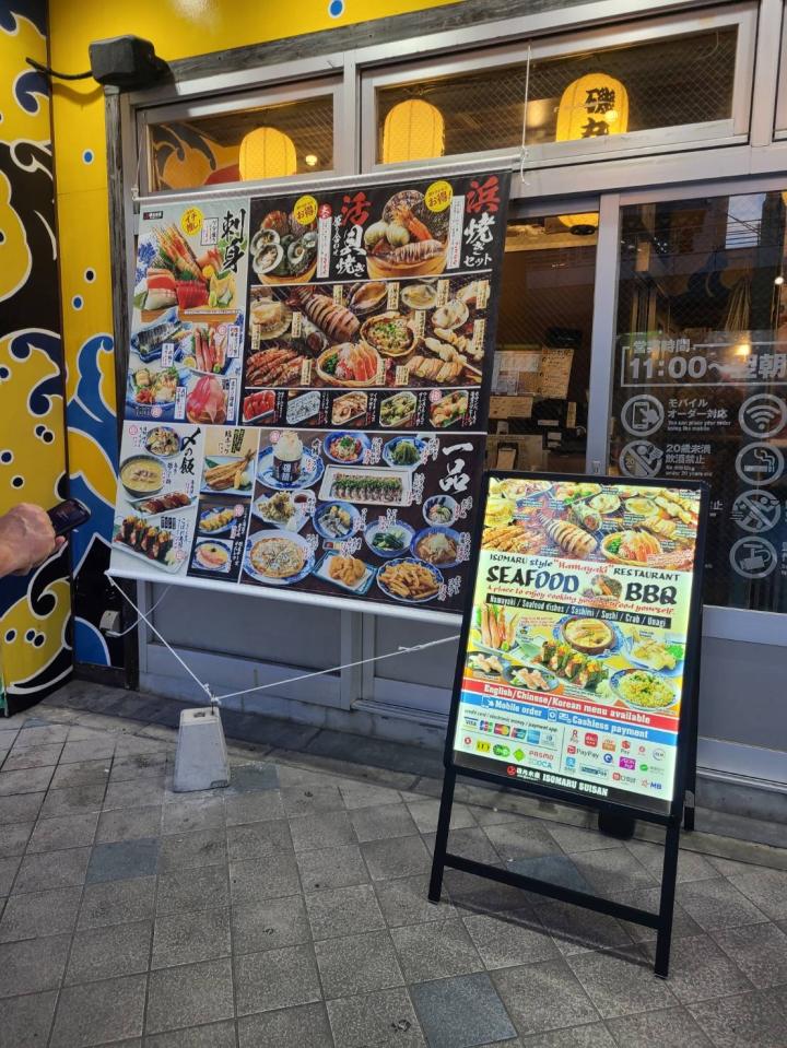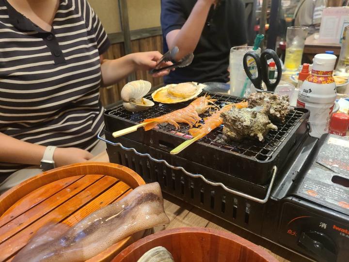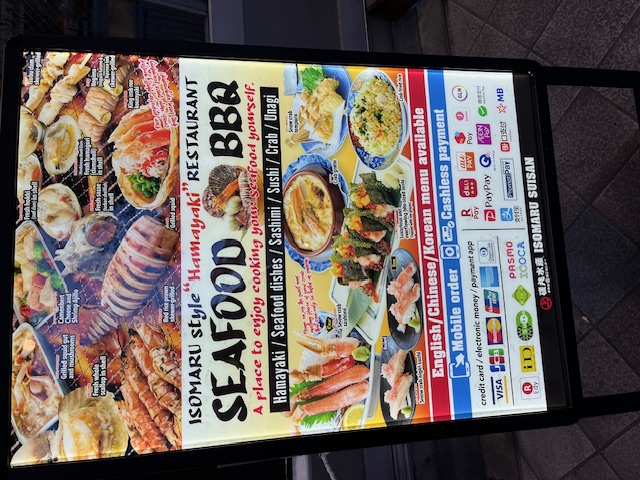 In this article we will take a look at a "Isomaru Suisan", which is a popular "Izakaya" (Japanese-style pub) specializing in sea food. (Note: For some general information about Izakaya pubs please click on the link below.) Isomaru Suisan is conveniently located a short walking distance from the Navy Base (CFAY) and is very close to Keikyu Yokosuka Chuo train station in the downtown area. It is open from 11:00 to 04:00. The decor is informal, colorful, and rustic -- with the feel of dining in a rural fishing port. Wooden booth-type seating is available for couples and larger groups. On the tables are placed small/portable grill stoves, which, similar to "Yakiniku" BBQ restaurants (see link below), allow sea food items to be cooked by customers. A wide variety of dishes are offered: fish, clams, shrimp, scallops, eel, crab, and squid, etc., as well as salads, chicken nuggets, fried potatoes, pickles, rice cakes, and other non-sea food items. Obviously, there are also various delicious offerings of raw fish -- sashimi (刺身) and sushi (寿司). Isomaru Susan's menus can be viewed by clicking on the link at the bottom. There are also kids' meals and an extensive list of soft & alcoholic drinks. Ordering is easy by using the laminated paper menu which has pictures, or if you have a smart phone, scan a QR Code (printed on a card at your table) and an English language menu APP will appear on your phone and can be used to order and later on help settle the bill. There is no parking available nearby, so the best way to go there is via public transportation, taxi, or on foot. We hope you will have a chance to visit Isomaru Suisan and enjoy both good seafood and the traditional Japanese Izakaya pub atmosphere!