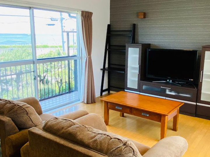 Town House in Maborikaigan nearby ocean , Ocean view from Living and Dining🌊 , Nice yard , 1 Parking , 1F 3bedrooms and Full bathroom ,2F 1 bedroom , Kitchen and Living Dinig , Funished (Washer , Dryer , Microwave , refrigerator , JP Oven/stove , Couch , coffee table , Dining Table and Chairs , Bed )