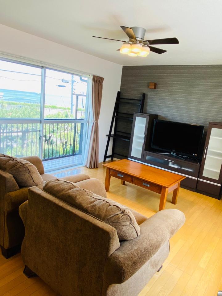 Town House in Maborikaigan nearby ocean , Ocean view from Living and Dining🌊 , Nice yard , 1 Parking , 1F 3bedrooms and Full bathroom ,2F 1 bedroom , Kitchen and Living Dinig , Funished (Washer , Dryer , Microwave , refrigerator , JP Oven/stove , Couch , coffee table , Dining Table and Chairs , Bed )