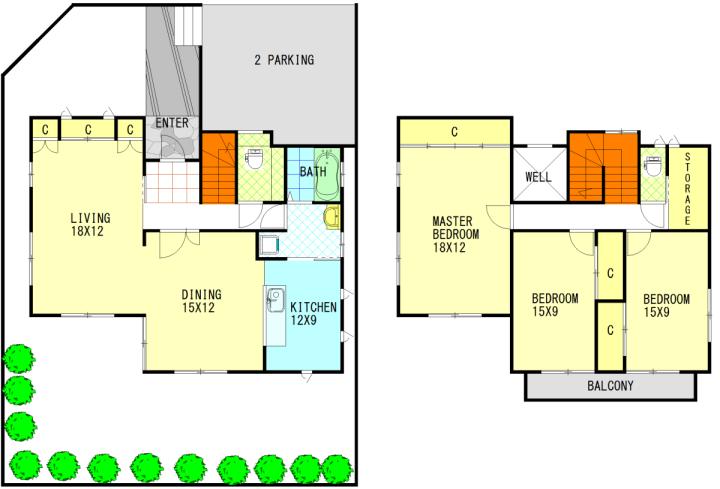 3bedrooms, 1 bathroom, 2 toilets, large living room, large master bedroom,