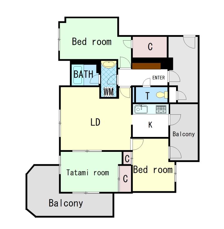 3 bedrooms including a tatami room.