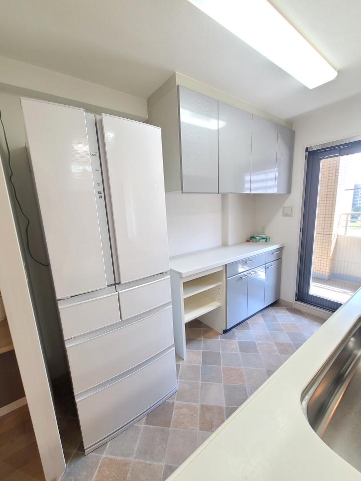 There is a refrigerator and washer/dryer installed and plenty of cabinets.
